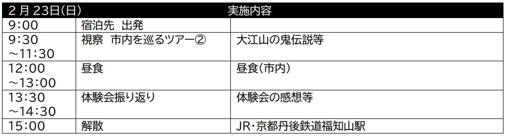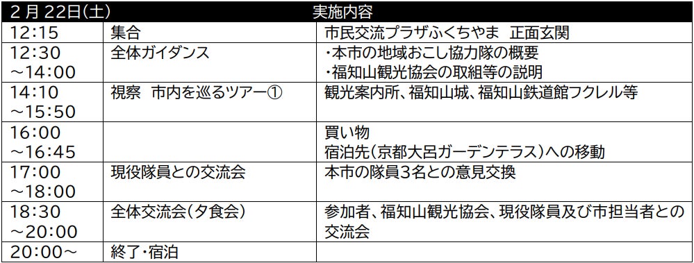 地域団体や現役隊員との交流により、相互理解を深めて、ミスマッチを防ぐ 今回の体験テーマは「観光×情報発信」 ■日時 2025年2月22日(土)・23日(日) ■場所 京都府福知山市内