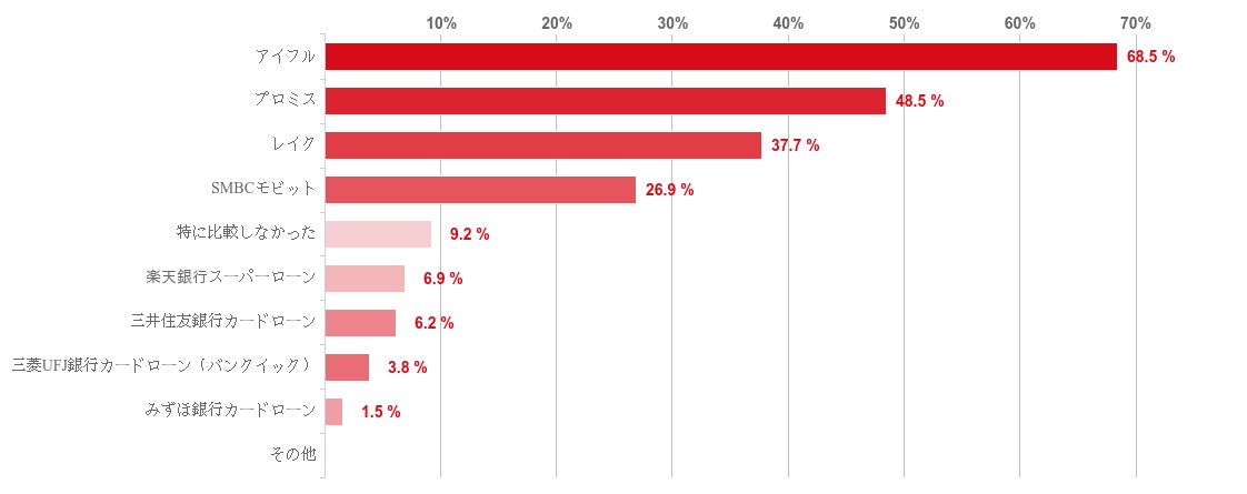 アコムと同じ大手の消費者金融を比較対象としている人が多かった。アコムの在籍確認と同じく、原則電話連絡がない大手消費者金融の、審査スピードや手続きの利便性などその他のポイントを比べていると考えられる。