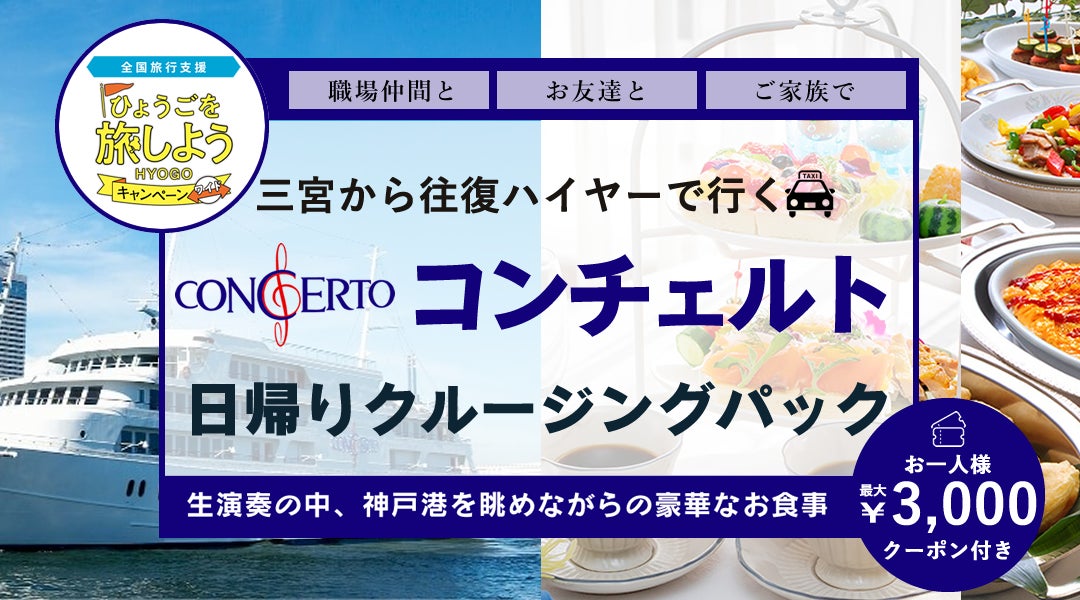 株式会社フォーティーズ(本社:大阪市鶴見区、代表取締役 岡武史)は全国旅行支援割を受けて「ふるさと応援!ひょうごを旅しようキャンペーンワイド」の対象商品としてランチクルーズ・ティークルーズ・トワイライトクルーズ・ナイトクルーズから選べるコース。往復ハイヤー送迎付きコンチェルト乗船料とお食事がセットになったパックツアーのオンライン販売を開始しました。