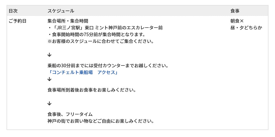 万一、時間に間に合わない可能性がある場合は、お電話(078-945-8424)までご連絡ください。ただし、定刻出航を予定しております。予めご了承下さいませ。