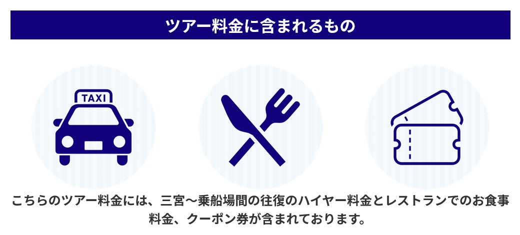 三宮からの往復ハイヤーとコンチェルト乗船料とお食事がセットになったパックツアー♪