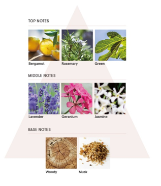 トップノートのベルガモットやローズマリーが、軽やかなフェミニンさと繊細さを引き出しながら、ウッディーやムスクの甘く強い香りのコントラストで、奥行きのある表情をつくり出します。