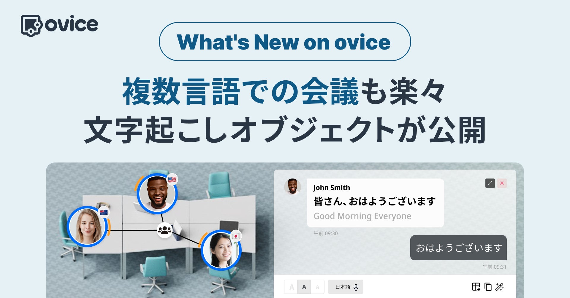 oviceは2020年8月のサービスリリース以降多くの企業のオフィスとして利用されてきました。その中で、「会議の発言内容を自動で文字に起こしたい」「海外拠点のメンバーとの打ち合わせが多いので、翻訳の機能がほしい」などの声が寄せられていました。