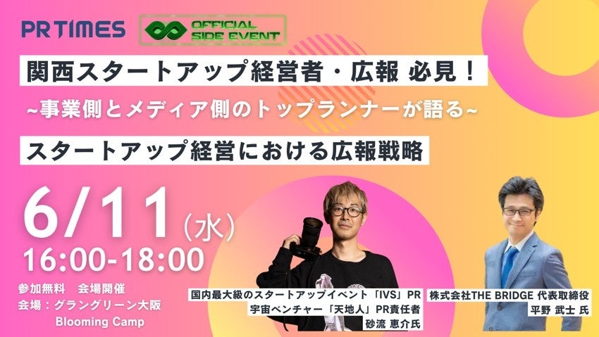 関西発、スタートアップや広報担当者向けのサイドイベント。広報を経営の武器へと昇華させ、関西から全国、そして世界へと繋げていくきっかけを提供。イグジットを加速させる広報戦略とは?