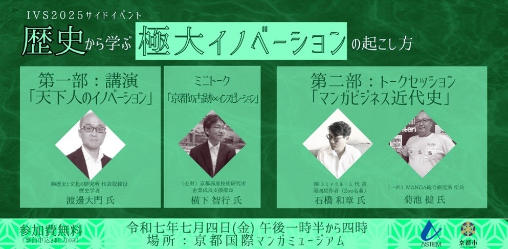IVS KYOTO実行委員会(株式会社Headline Japan、京都府、京都市)は、2025年7月2日(水) 〜 4日(金)の3日間に渡り京都市勧業館「みやこめっせ」をメイン会場に「IVS2025」を開催します。このたび、本カンファレンスの会期中、その前後も含めたIVS参加者が主催をする"公認サイドイベント"の募集を開始します※。