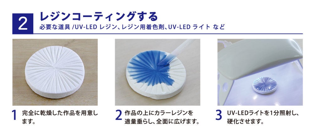 レジンや絵の具で着色も可能で、ブリオン等のパーツを使えばアレンジ自由自在です。