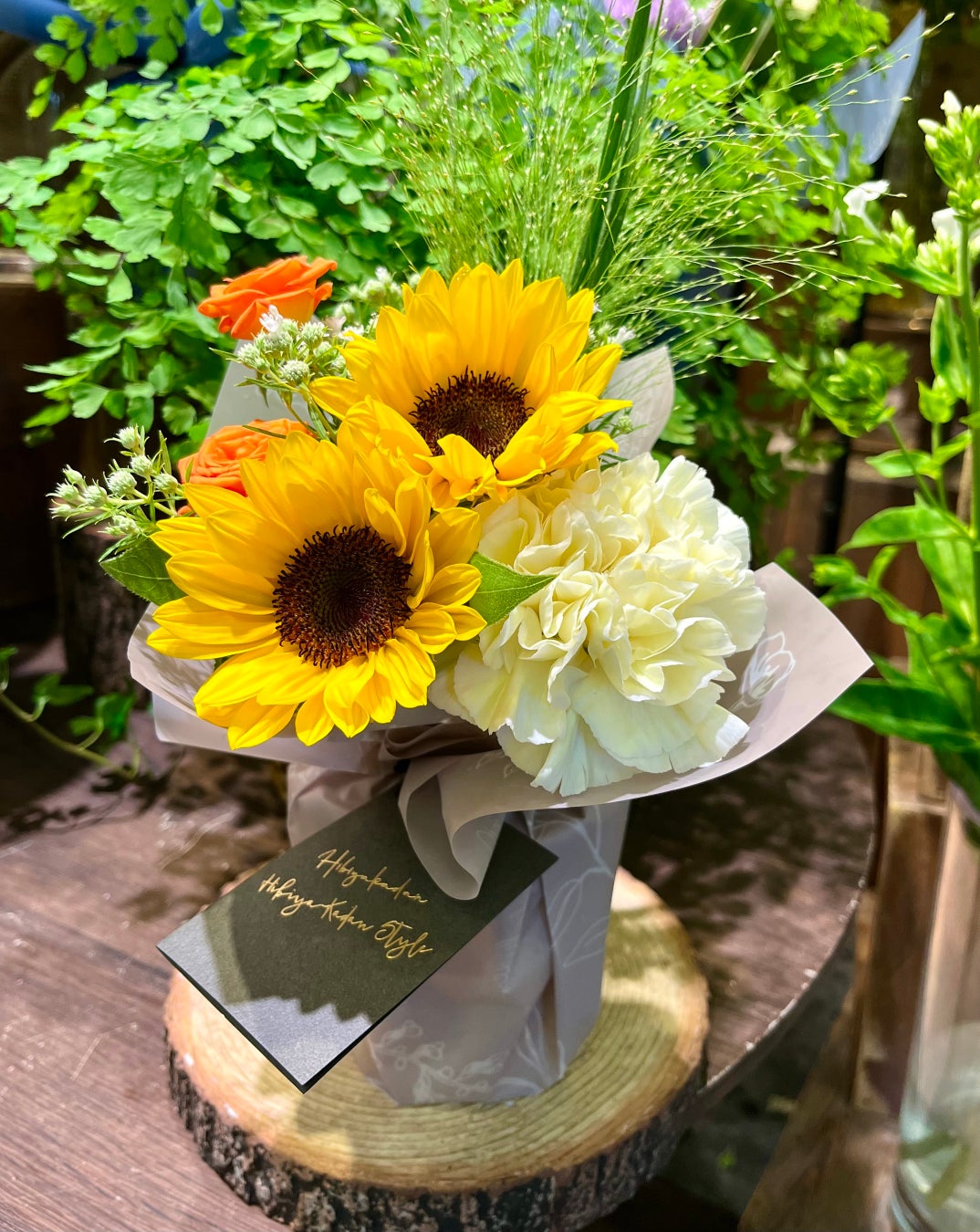 ・内容:花瓶がなくても飾れる置き型タイプのヒマワリブーケ作成!お子さまでもできるプチお花屋さん体験です。