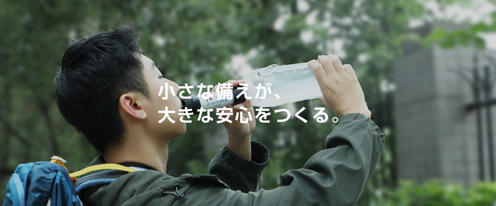 効率的で便利な電動式浄水器や、様々なシーンに対応した各種モデルの携帯用浄水器。緊急時の安全な飲料水確保をサポートします。