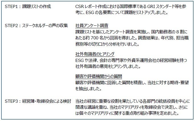 2020 年11 月に公表した「当社のESG 重点テーマ」は、このたび特定した「資産運用業務におけるマテリアリティ」に統合されました。