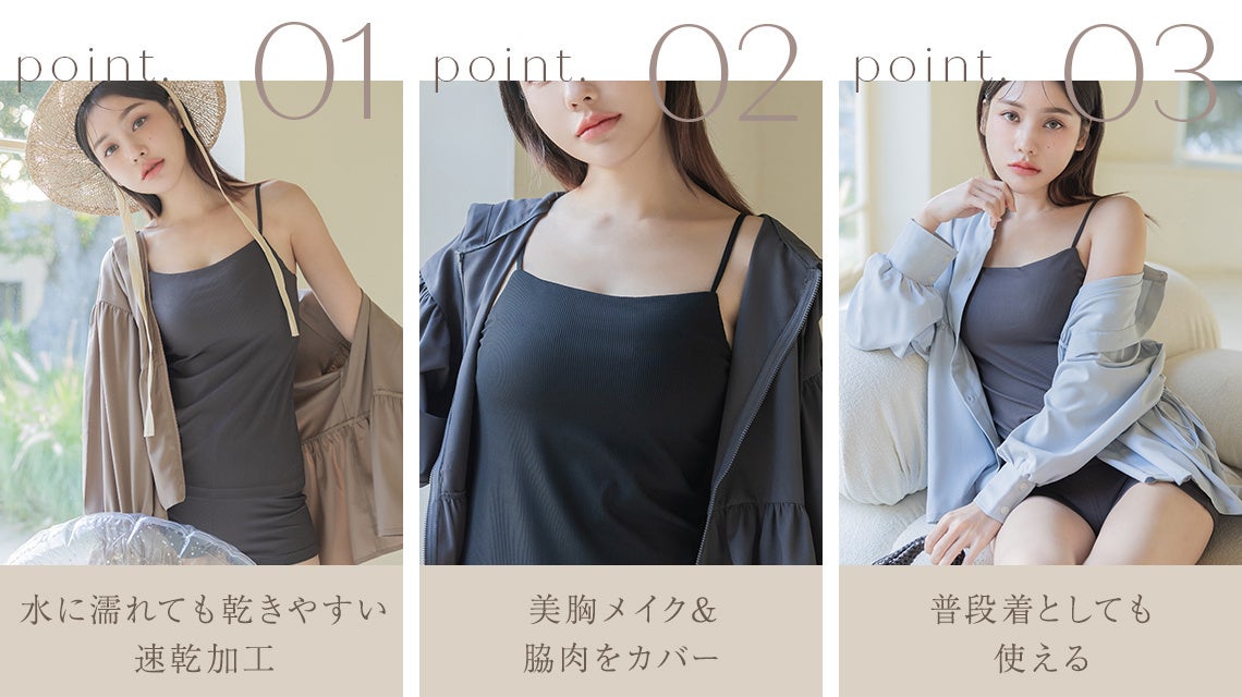 海やプールをもっと気軽に楽しむ、水陸両用ブラキャミ&ショートパンツ。