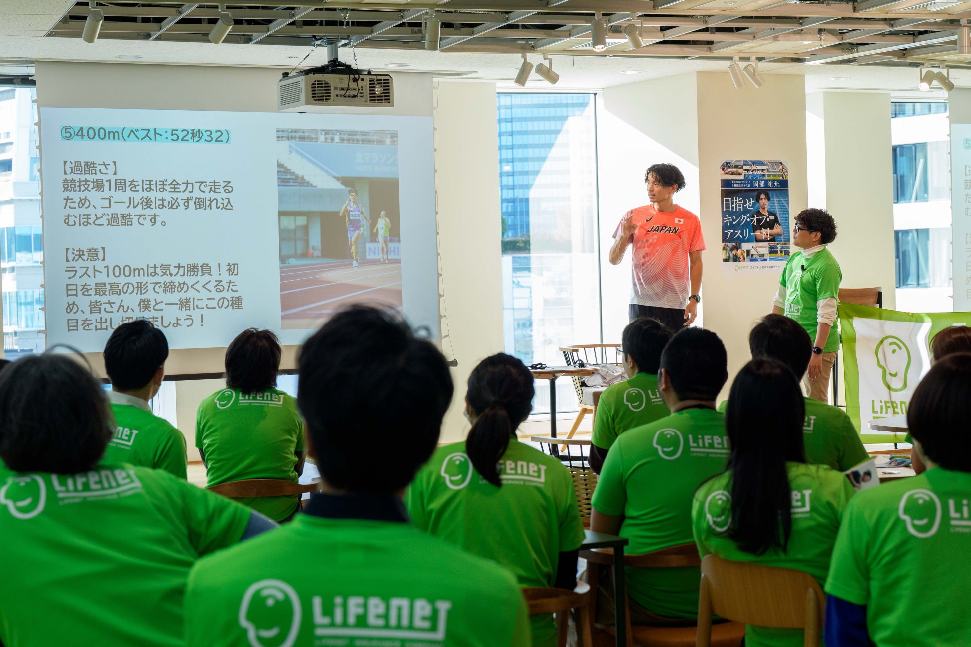 ライフネット生命 東京2025デフリンピックに出場の岡部祐介(十種競技)を壮行会で激励!