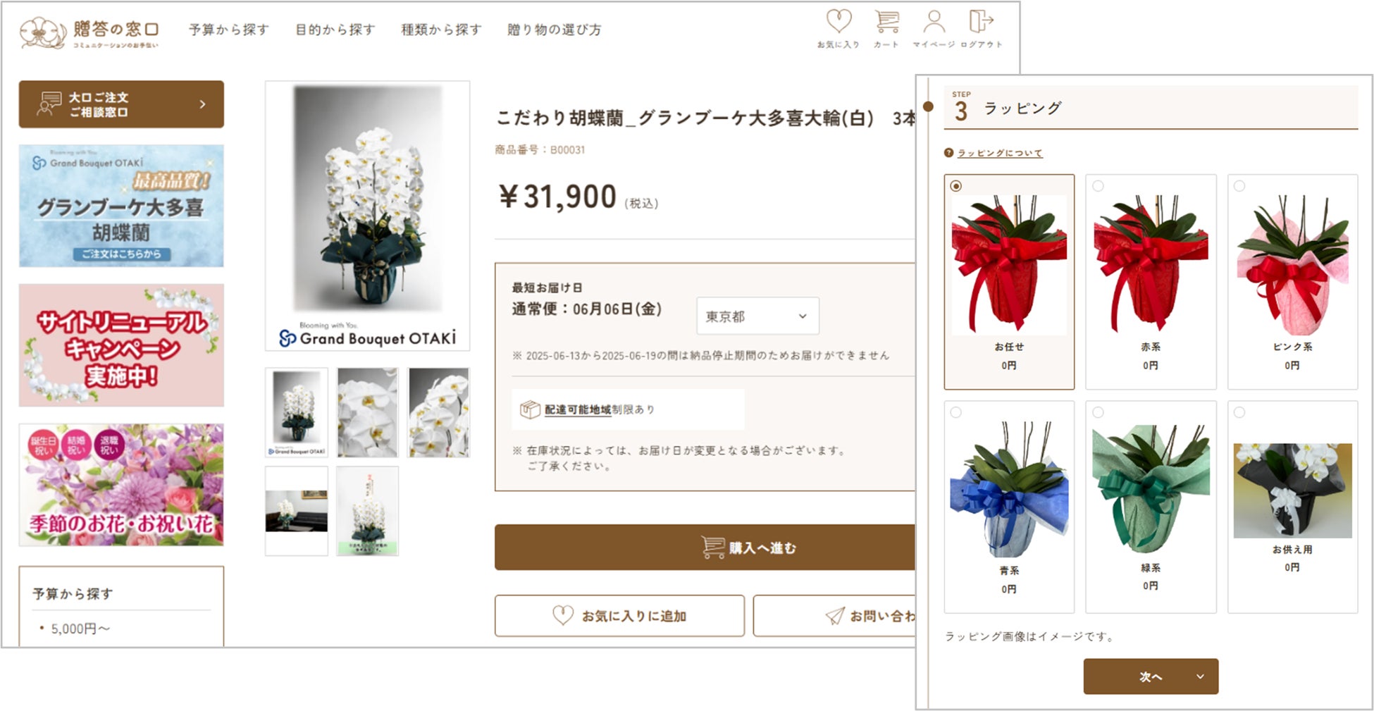 オークネット AG贈答用花WEBショップ「贈答の窓口」をリニューアル ~UIの刷新と拡充機能で利便性を向上~