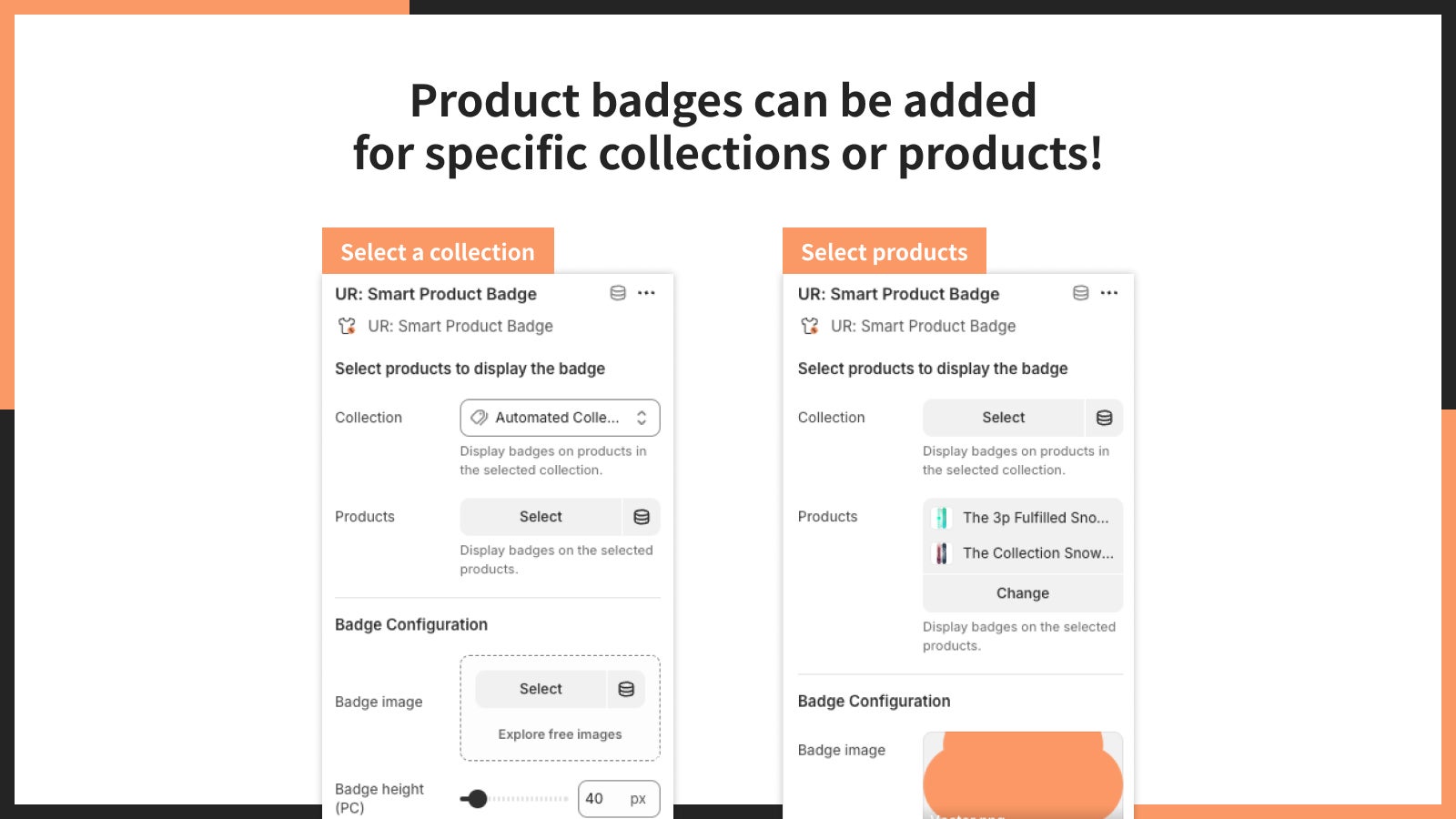 ■特定のコレクションや商品に対して商品バッジを追加できる!