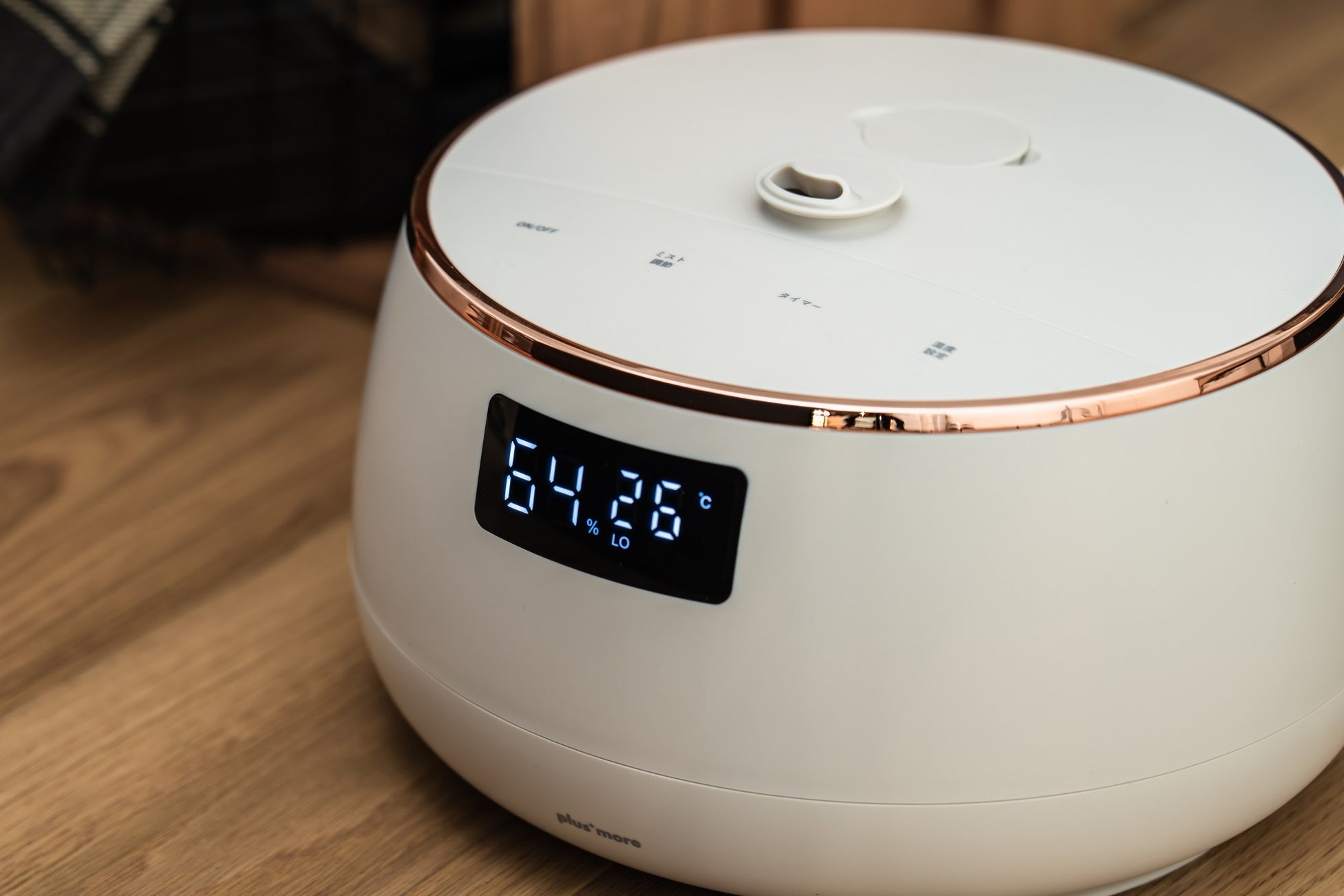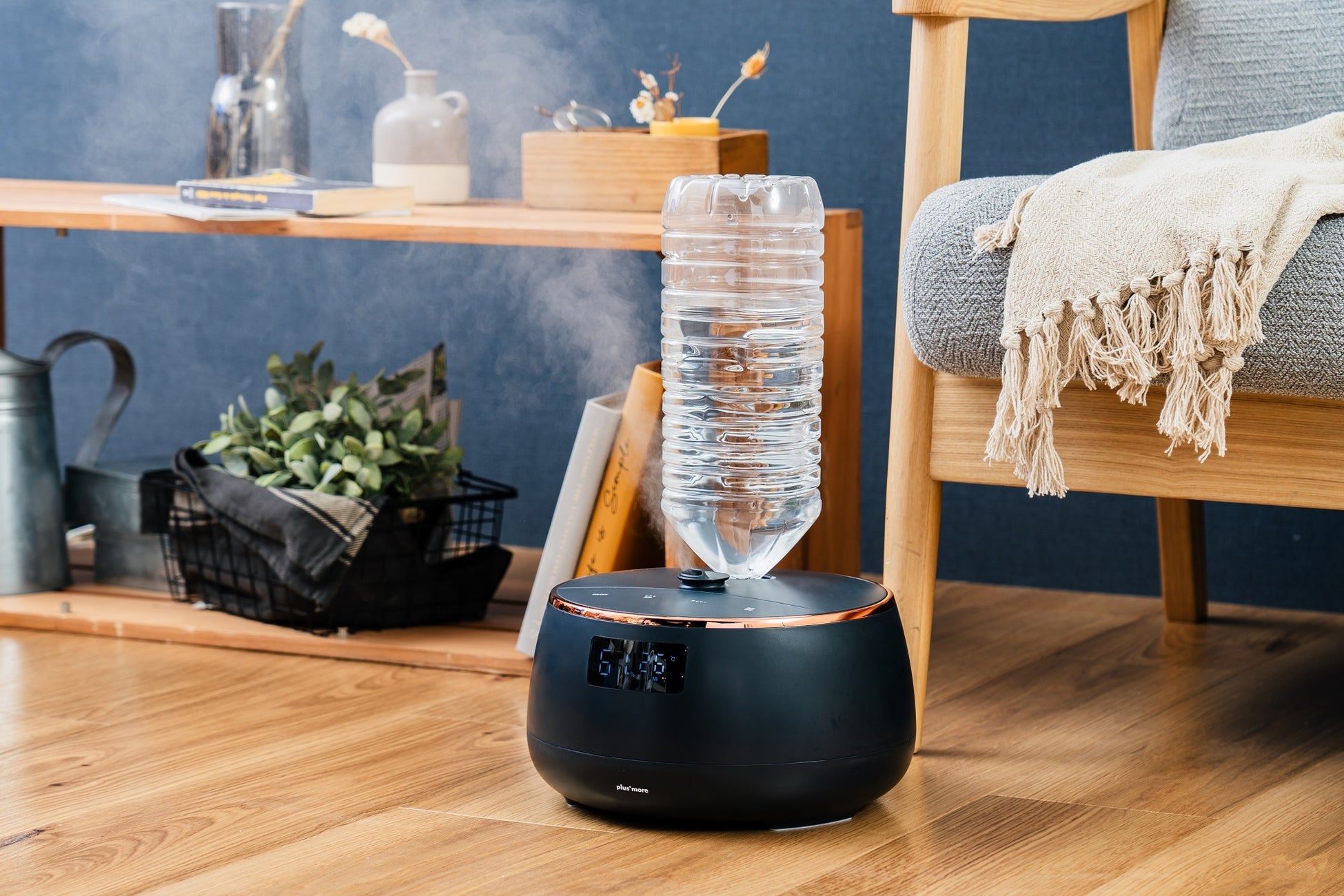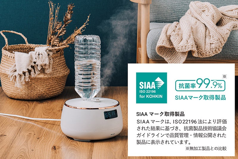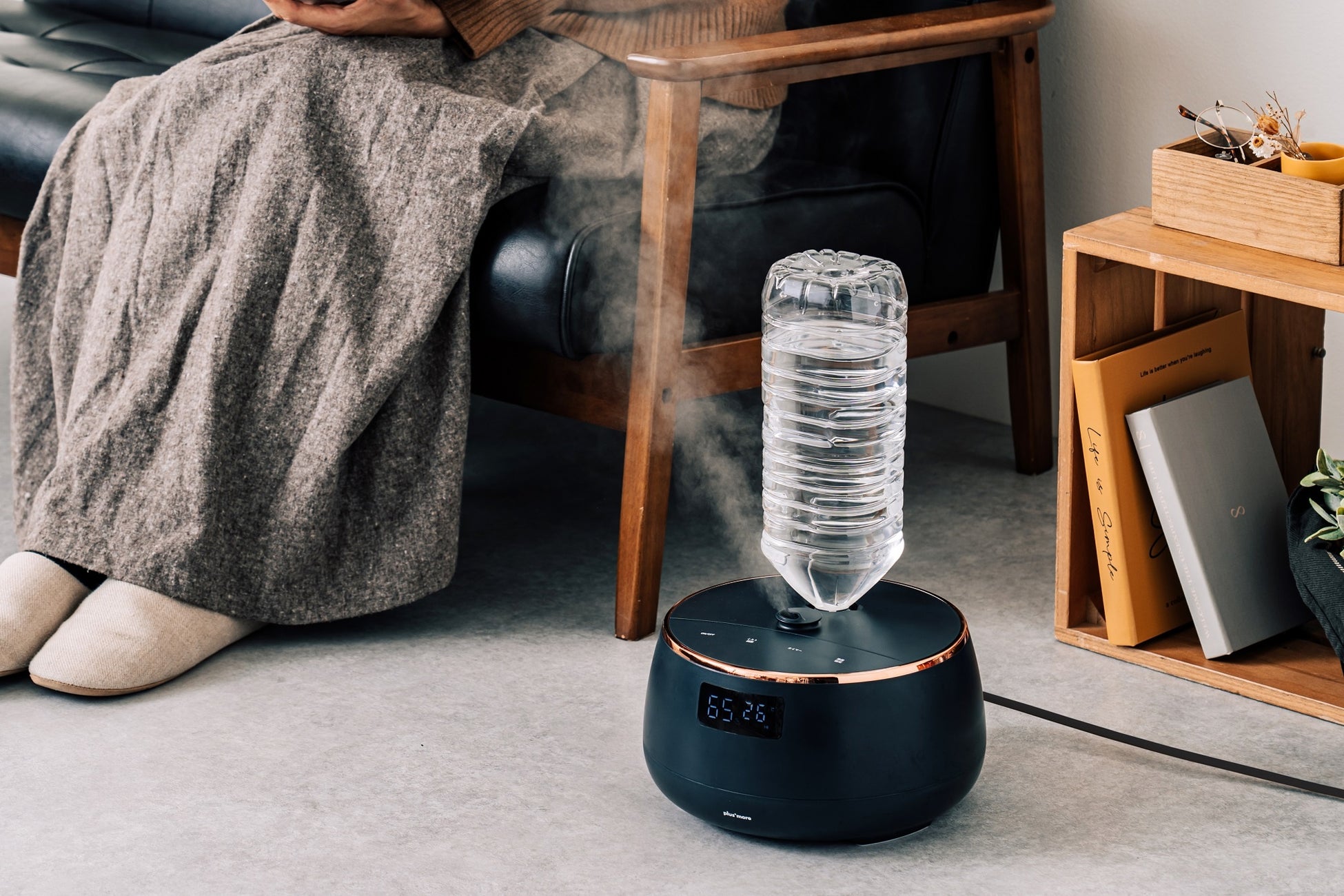 最大3.5Lの大容量で長時間加湿。2023年冬の新作「湿度コントロール 超音波式加湿器 ペットボトル自動給水機能付」がplus more(プラスモア)から新発売。