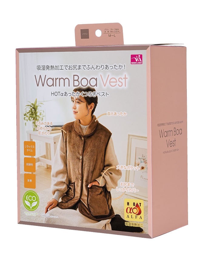 株式会社ニーズ/株式会社サンファミリー(本社:兵庫県加古川市、代表取締役:本岡勝則)は、「HOTαあったかくつろぎベスト」1,980円(税込)を9⽉1⽇(金)より発売開始しました。