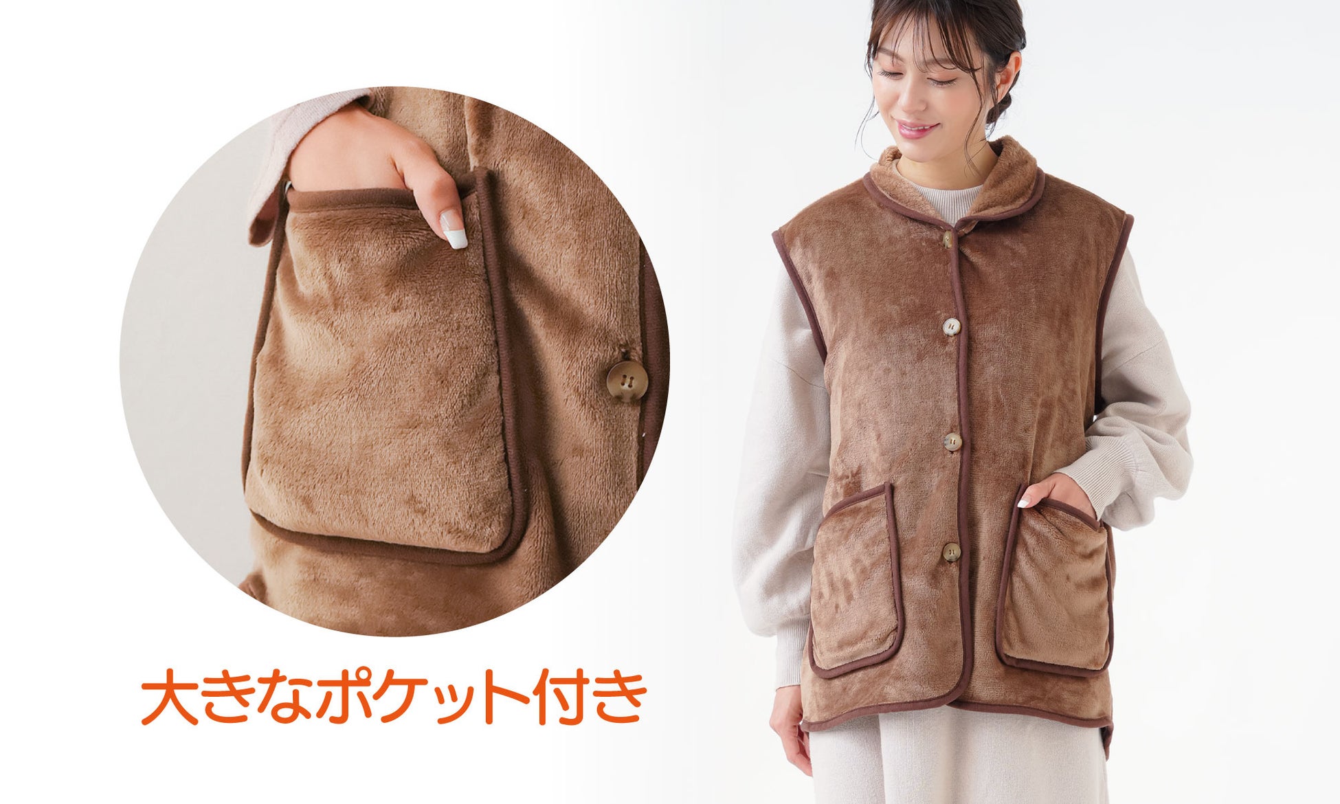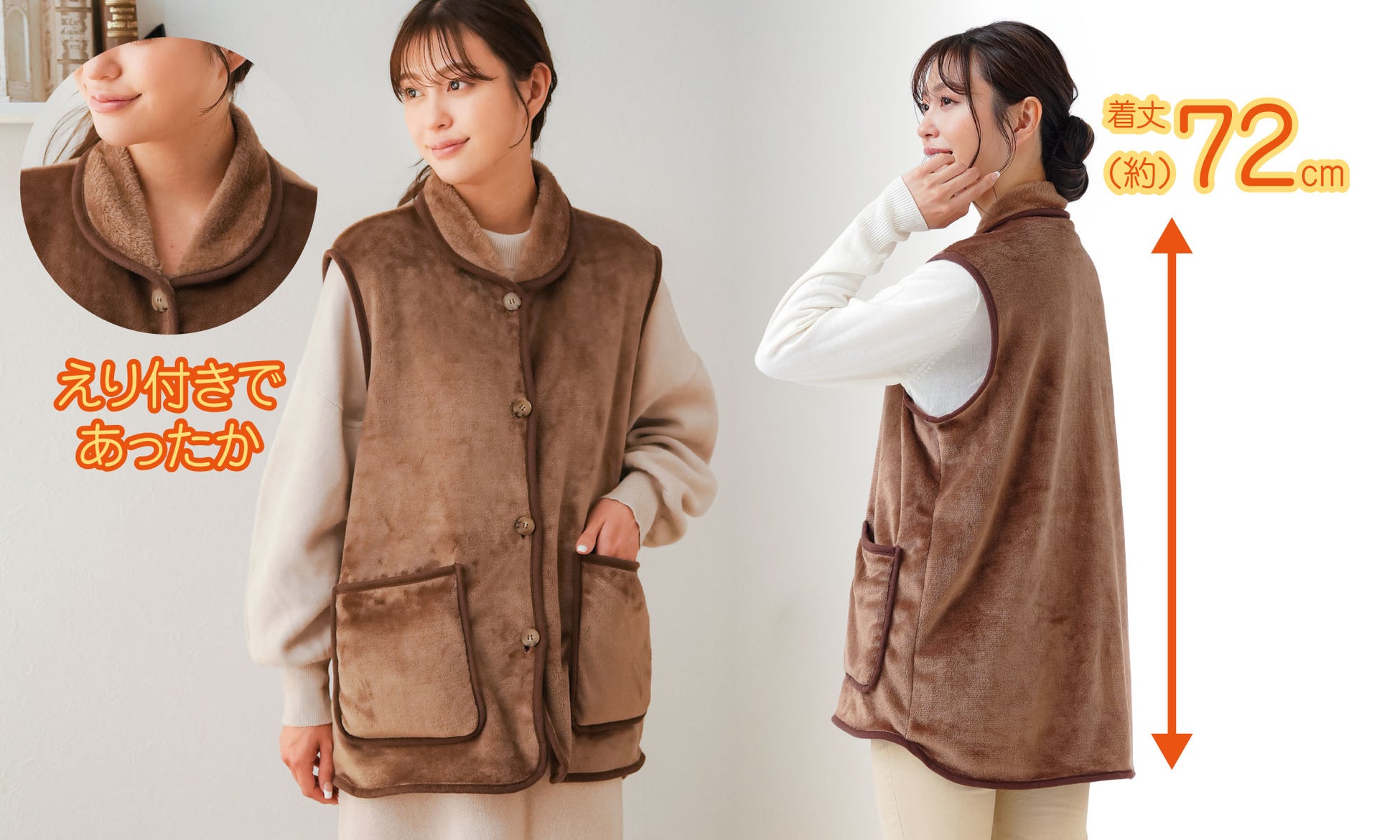 とろみのあるやわらか生地がクセになる♪お尻までふんわり包み込むあったかベスト