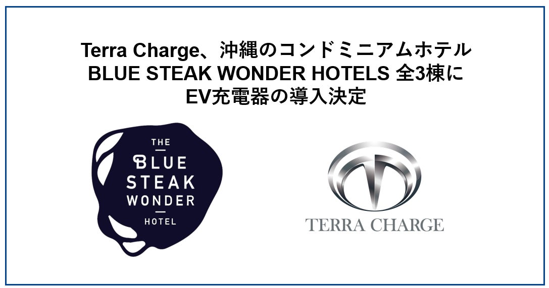 EV充電インフラ事業「Terra Charge(読み:テラチャージ)」を展開するTerra Motors株式会社(本社:東京都港区、取締役会長:徳重徹 / 代表取締役社長:上田晃裕、以下「テラモーターズ」)は、沖縄県の宿泊施設「BLUE STEAK WONDER HOTELS」の駐車場へのEV充電器の導入が決定しましたことをお知らせいたします。2024年度中に「BLUE STEAK WONDER HOTELS」3棟(3棟所在地:沖縄県北谷町および読谷村)の駐車場に全4基のEV充電器を設置する予定です。沖縄県における充電インフラ普及を推進し、沖縄県の自然環境保護と宿泊施設としての魅力度向上を相互に目指してまいります。