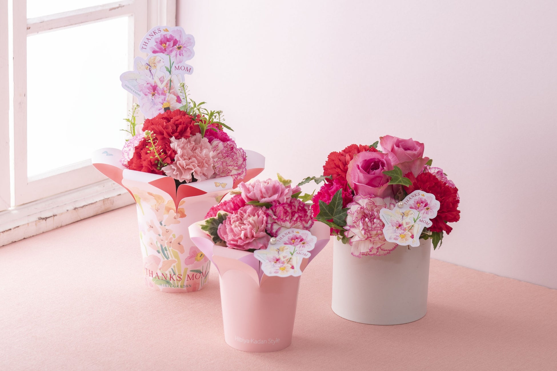 4月28日(火)からは、水彩画のやわらかなイラストが感謝の気持ちをやさしく彩る店頭限定デザインのコラボフラワーギフトが順次店頭に登場します。その他、カーネーションやアジサイの花鉢、長く飾って楽しめるプリザーブドフラワーなど、贈る相手のライフスタイルに合わせたギフトを種類豊富にご用意します。