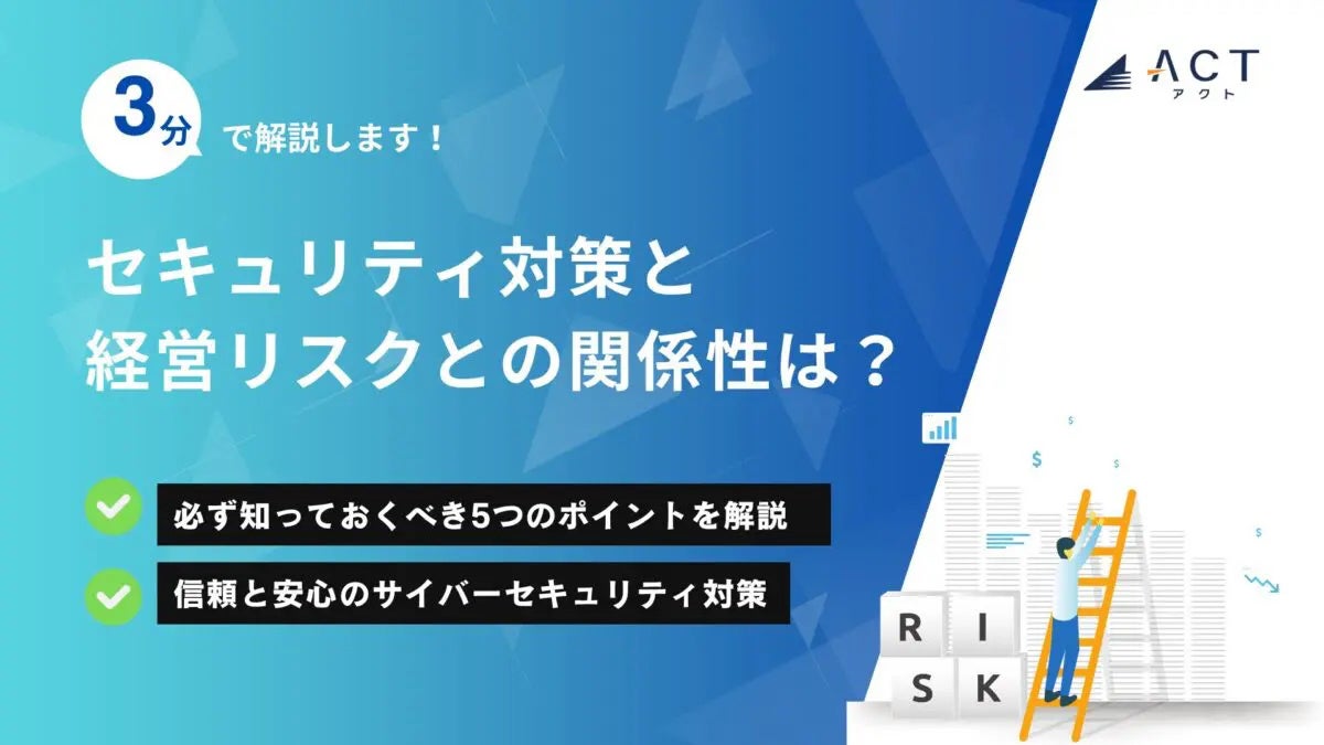 今年30周年を迎え、サイバーセキュリティ事業などを行う株式会社アクト(本社:東京都文京区、代表取締役CEO 小林 智彦 、以下 アクト)は【3分で解説!セキュリティ対策と経営リスクとの関係性は?】のホワイトペーパーを公開しました。