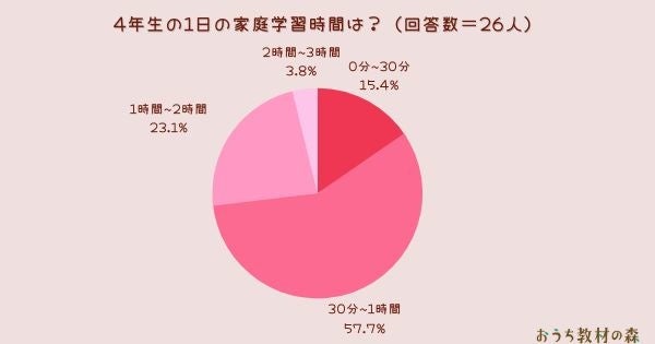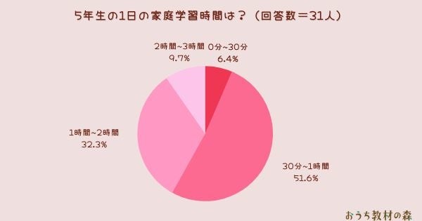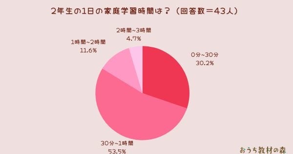 ・1時間~2時間(10人):宿題が1時間と公文が20分くらいです