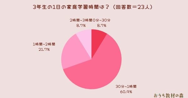 ・30分~1時間(15人):宿題で30分ていど、プラス市販のドリルなど。塾には通っていません