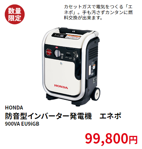 商品名:HONDA 防音型インバーター発電機 エネポ 900VA EU9iGB