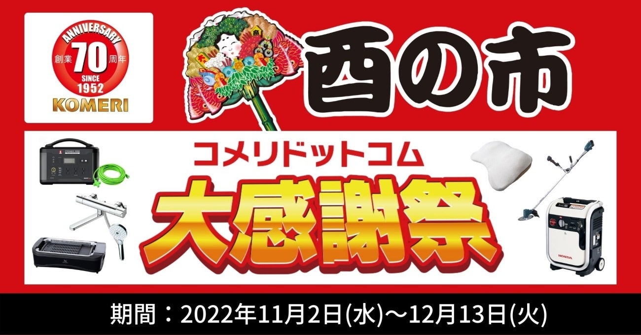 日ごろのご愛顧に感謝の気持ちを込めて!数量限定 ネット限定の大特価セール「酉の市 コメリドットコム大感謝祭」を開催!