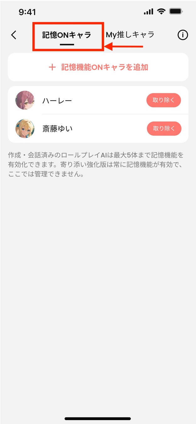 従来は一部のキャラに限られていた記憶機能を、ロールプレイ形式のAIキャラにも試験的に開放しました。