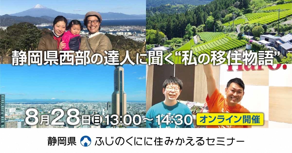 「静岡県で暮らすってどんな感じなんだろう?」「西部地域への移住を検討しているけど、先輩移住者のお話を聞いてみたい!」個性豊かな先輩移住者をゲストにお招きし、そうした皆さまの声に応えるセミナーを開催します。