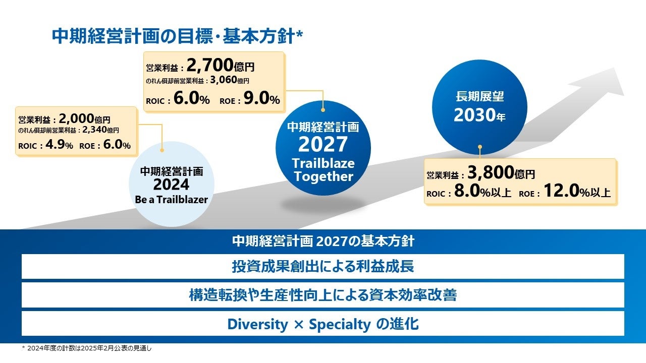 旭化成グループでは、当社が長期的に目指す姿と、それに基づく3カ年の方向性を示す『中期経営計画2027 ~Trailblaze Together~』(以下「新中期経営計画」)を策定しましたのでお知らせします。
