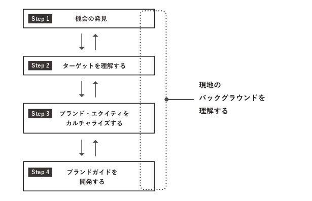 | Step1:機会の発見 Step2:ターゲットの理解 Step3:ブランド・エクイティのカルチャライズ Step4:ブランドガイドの開発 |