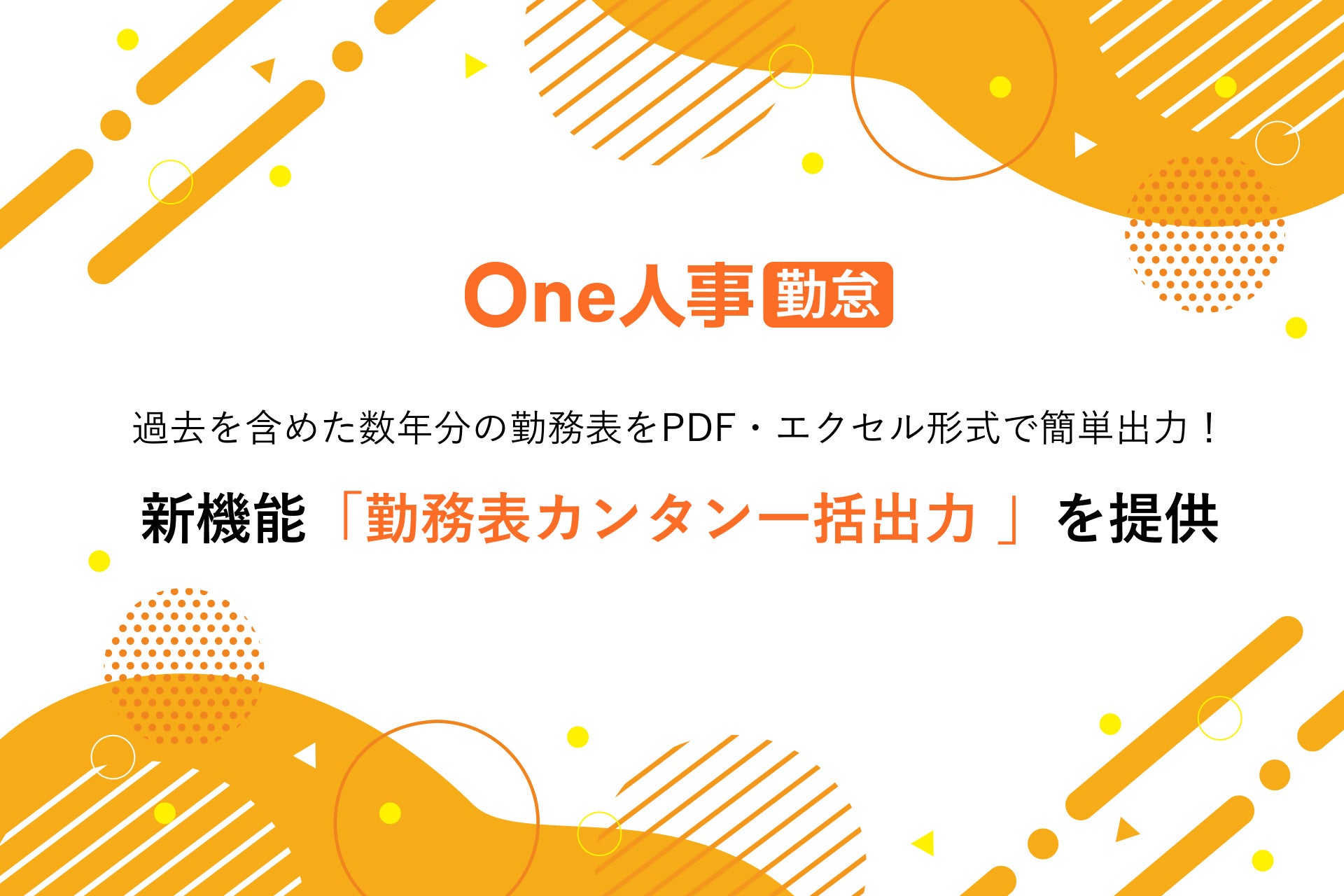 ワンストップ人事労務システム「One人事」を提供するOne人事株式会社(本社:東京都品川区、代表取締役社長:唐沢雄三郎)は、「One人事[勤怠]」に過去を含め数年分の勤務表を簡単に一括でPDFやエクセル形式での出力ができる「勤務表カンタン一括出力」を提供いたします。