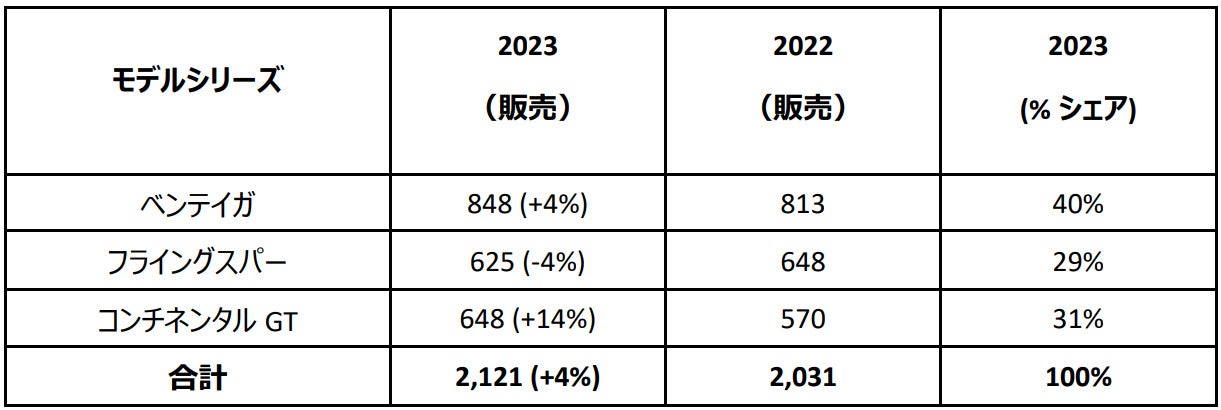 ラグジュアリーSUVのベンテイガは、この地域でのエクステンデッド・ホイールベース・モデルの導入をリード。コンチネンタルGTも引き続き成功を収める。