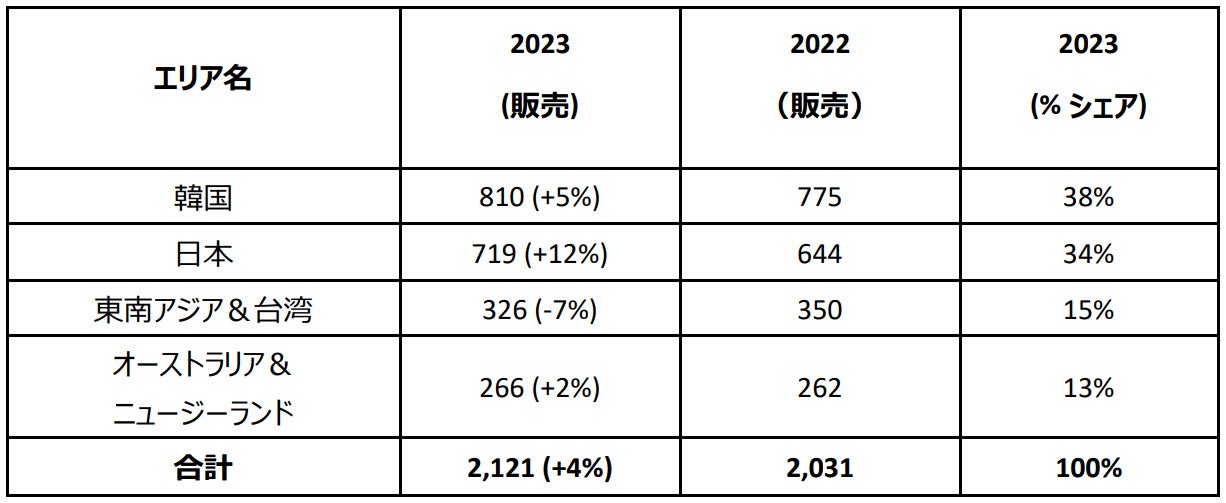 東南アジア、オーストラリア、ニュージーランドでは販売台数が 592 台を記録し、東南アジアと台湾地域全体では販売台数はわずか 7% 減少したものの、厳しい世界情勢の中でも回復力を示しました。