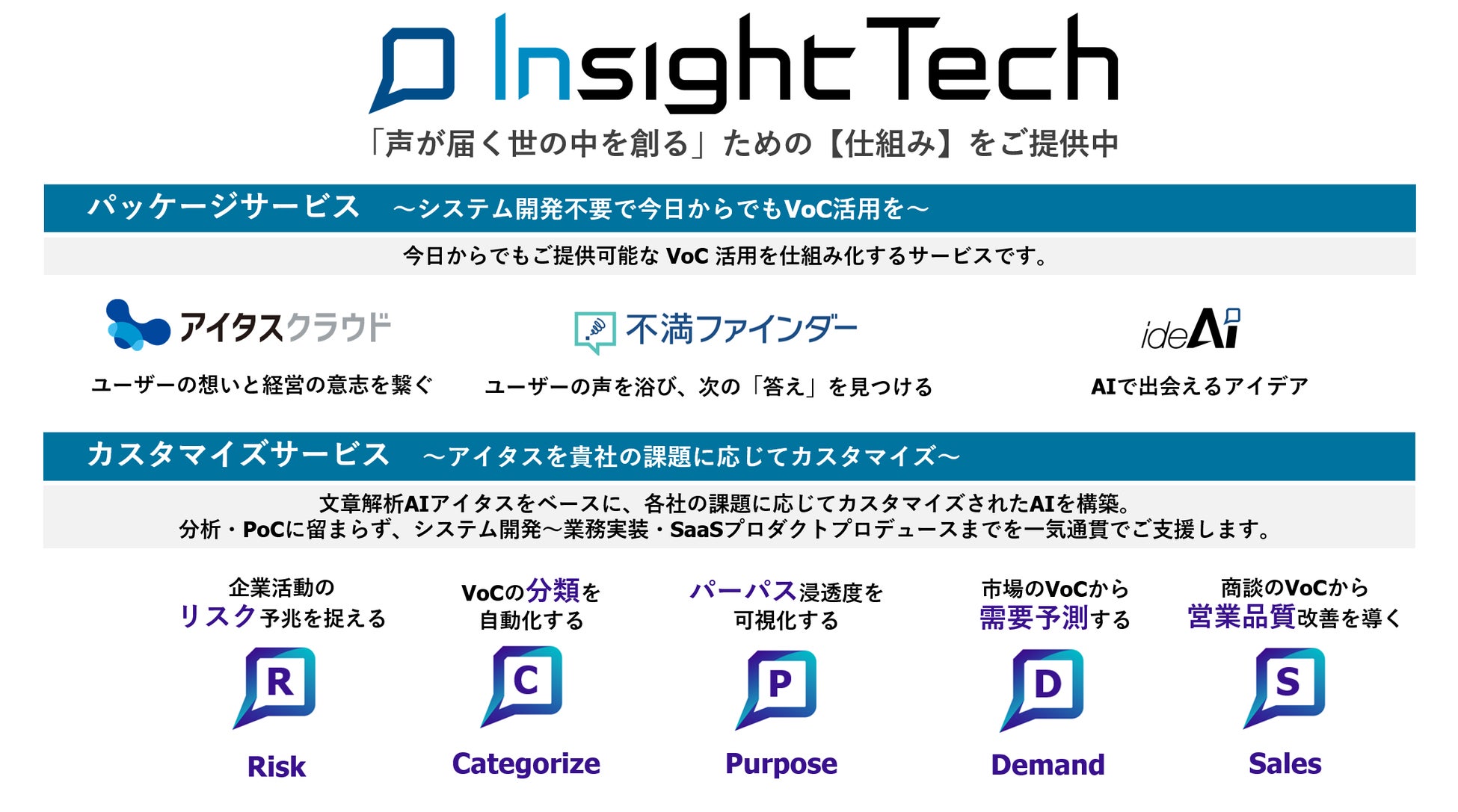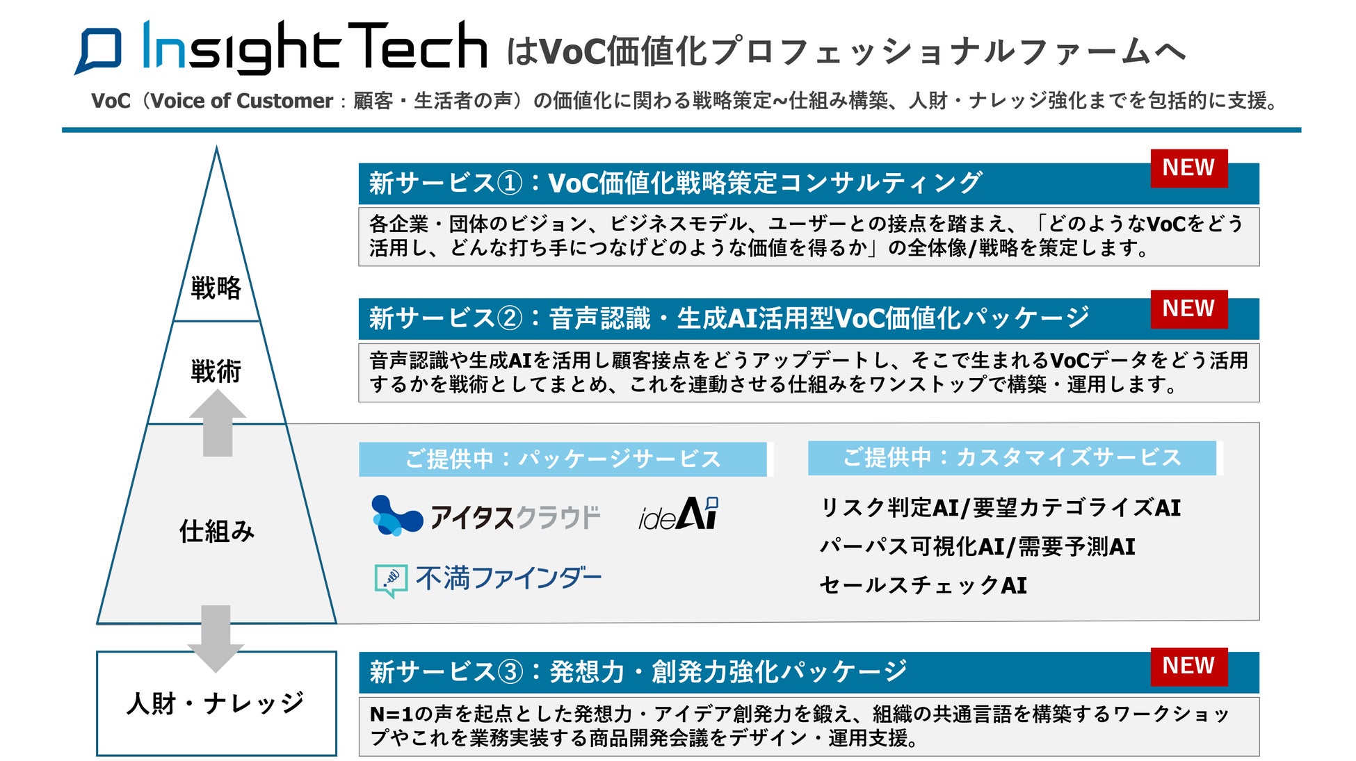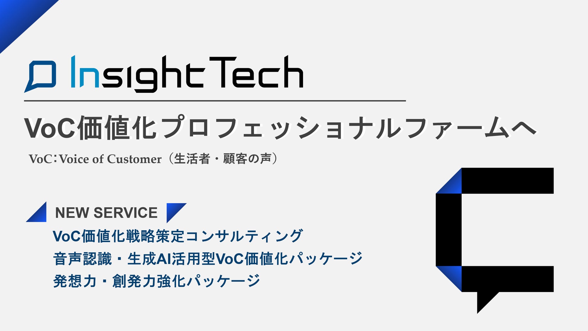 Insight Techは、VoC(顧客・生活者の声)活用戦略策定から音声認識・生成AI活用、発想力・アイデア創発力強化まで一気通貫で支援する”VoC価値化プロフェッショナルファーム”へ