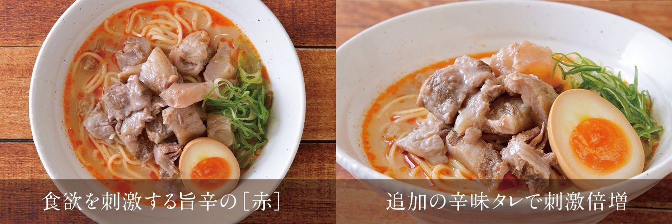 かねてより季節商品としてご提供し、ご好評をいただいていた「牛すじらーめん」。今年は「国産牛すじ」を100%使用し、牛すじの量も増量することで、昨年よりさらにスープに溶けこむ牛すじの旨味を存分に楽しめるらーめんに仕上げました。今季は定番で濃厚な「白」、旨辛の「赤」2種の味でのご用意です。