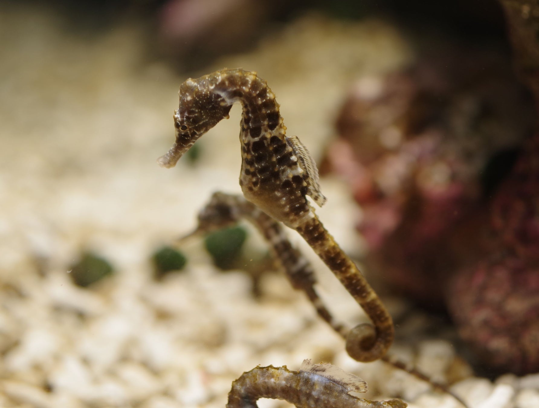 2024年の干支は伝説上の生きもの「辰」ということで、「竜の落とし子」の名の通り、竜を想起させるタツノオトシゴの仲間、「ポットベリーシーホース」を期間限定で展示しております。
