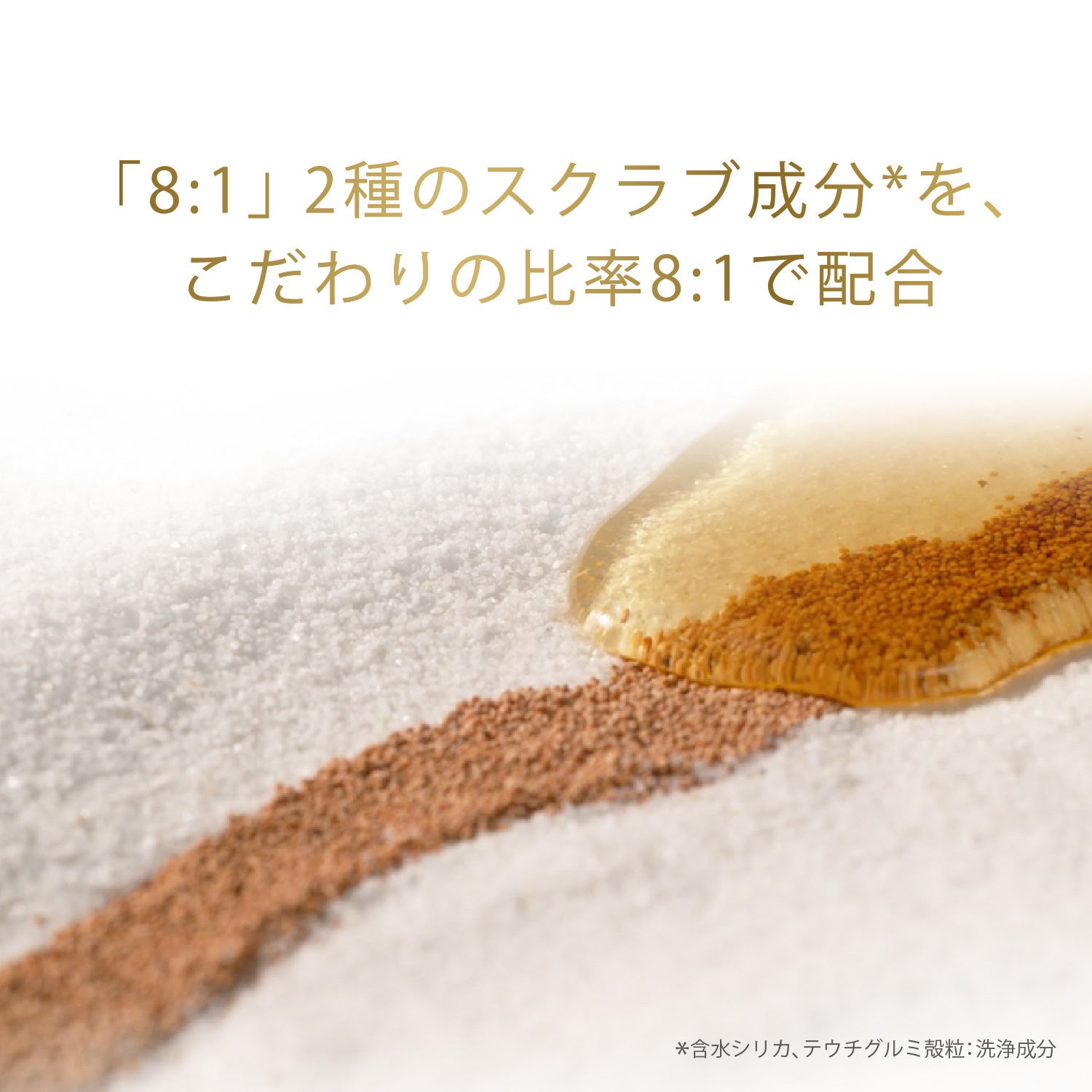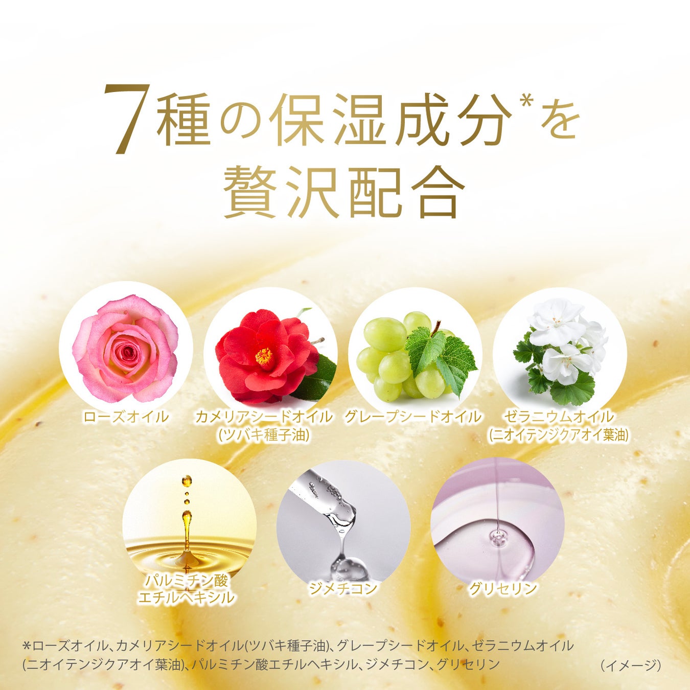 ■2種のスクラブをこだわりの“8:1”比率で配合した絶妙な使い心地でかんたん角質ケア 心をうるおすホワイトローズ&カメリアの香り※³でワンランク上のバスタイムを