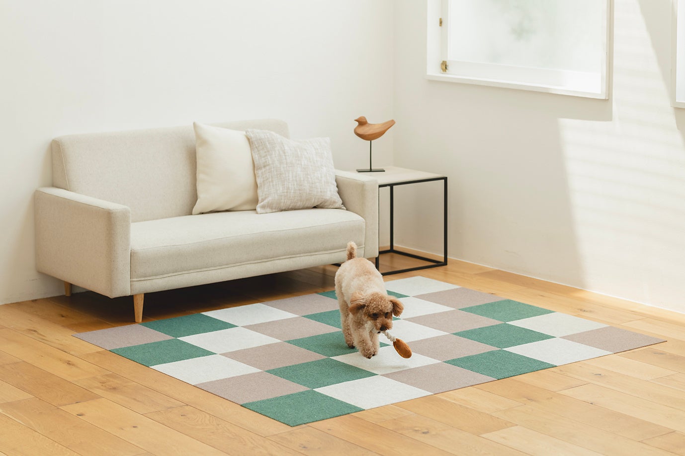 実際にご使用いただいたお客様からは、「愛犬も滑らず歩きやすそう」「足元が滑らないので元気に走り回っている」といった嬉しい声も届いています。加えて、消臭・撥水加工も施されており、毎日の暮らしの中で清潔さと快適さを保ちながら、ペットとの心地よい空間づくりをサポートします。