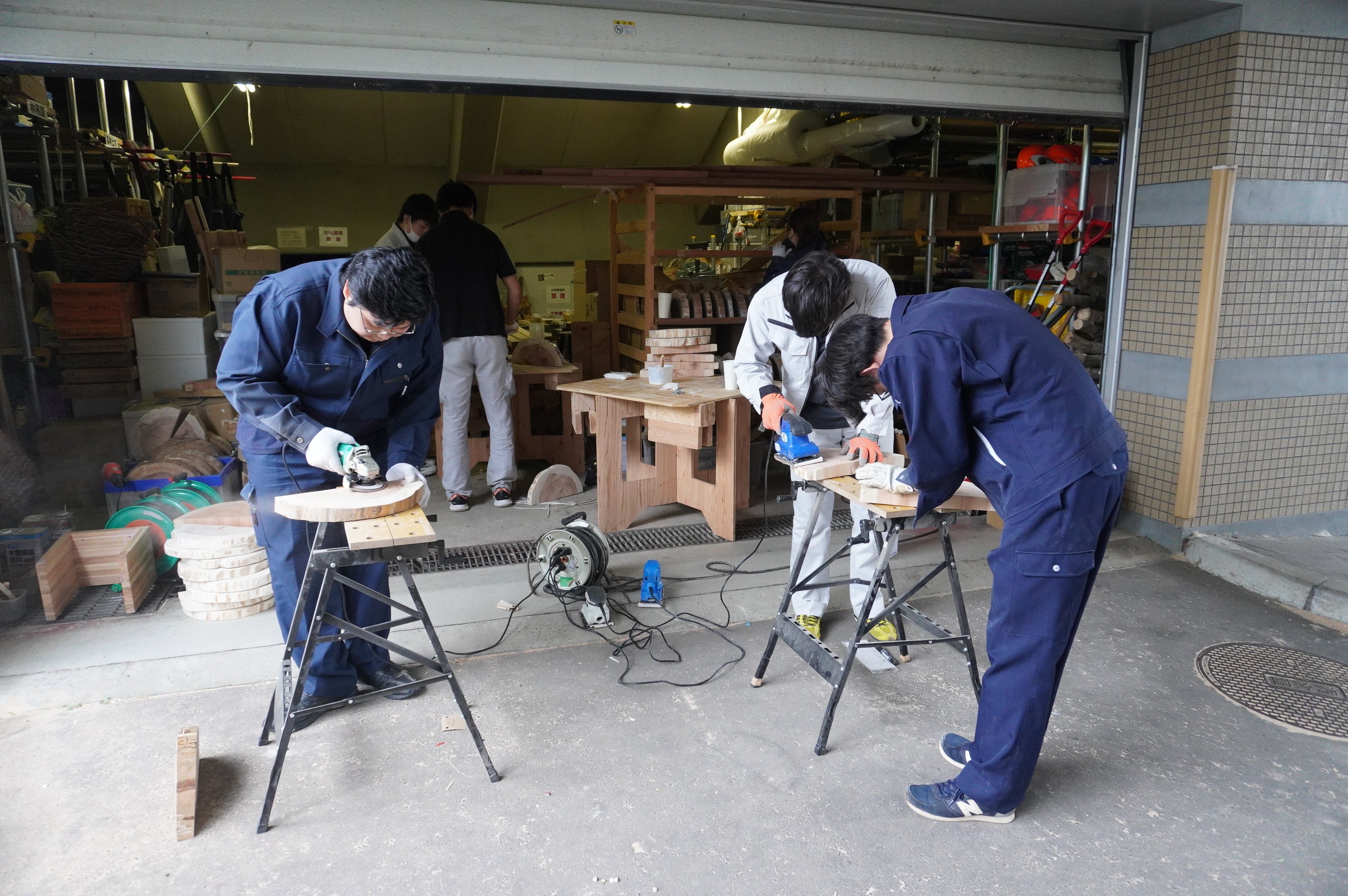 最初は、使い慣れないインパクトドライバーや電動サンダーなどの機械に戸惑っていた若手職員も、後半になるにつれ、見違えるように使いこなし、効率よく作業に取り組んでいました。