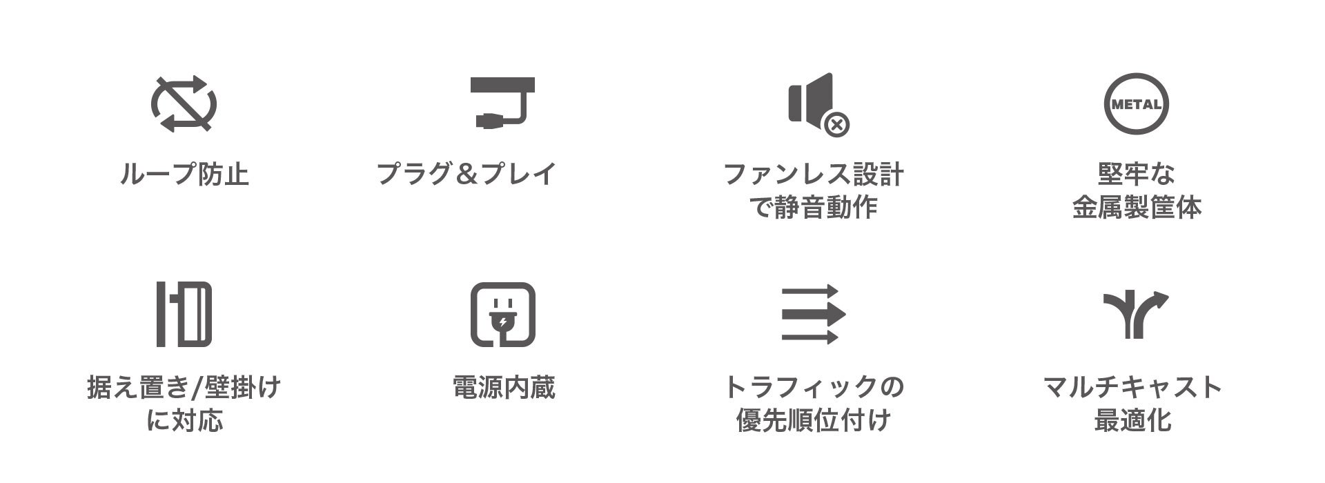 インターフェース:10/100/1000Mbps RJ45ポート×8搭載(Auto-MDI/MDIX&オートネゴシエーション機能に対応)