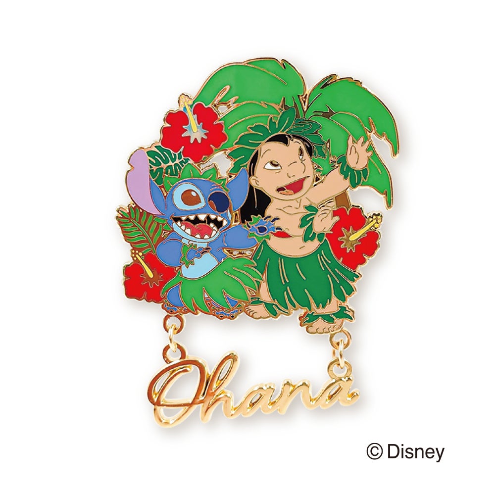 リロとスティッチがフラダンスを踊るシーンをデザイン。ハワイの言葉で家族を意味する「Ohana」が揺れるチャームになっています。