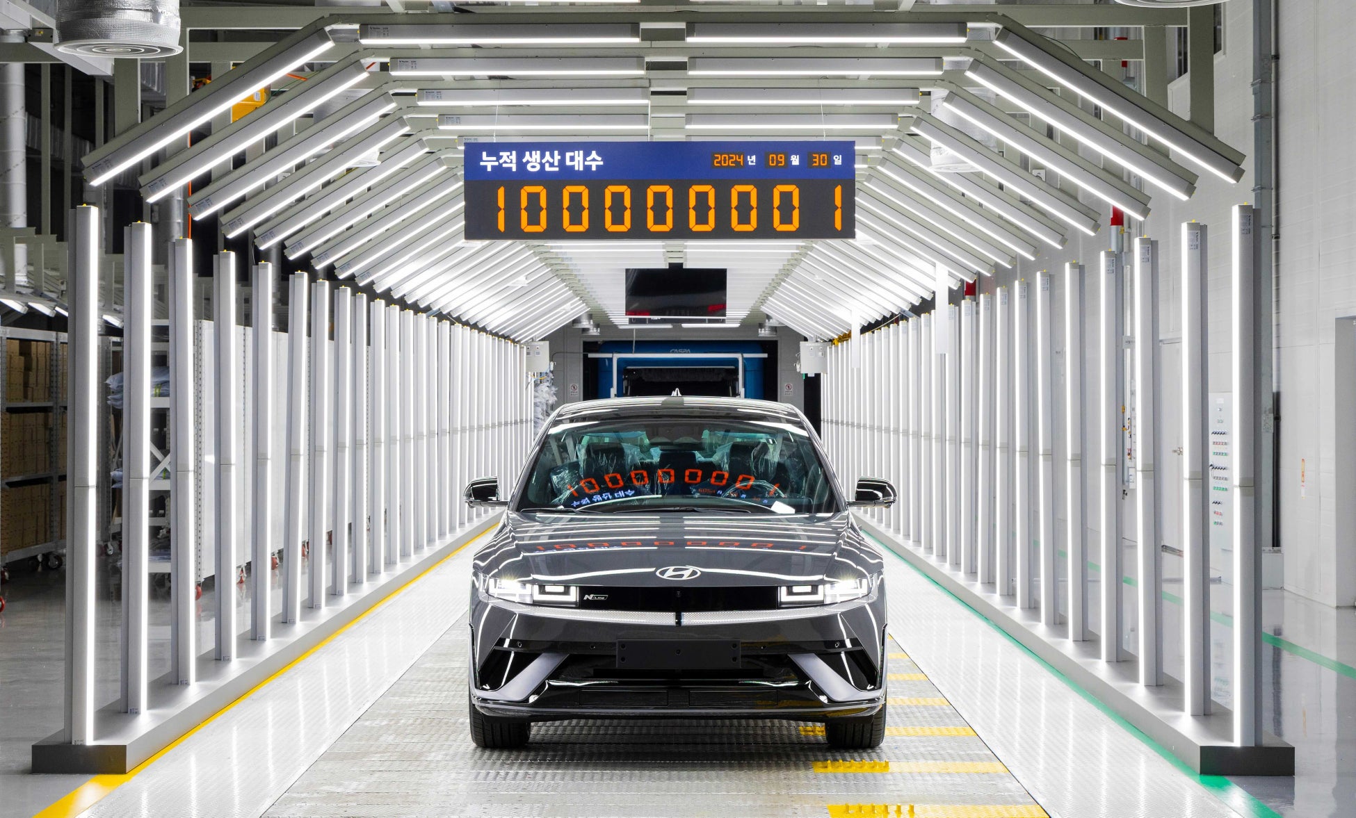 Hyundai Motorは、全世界での累計生産台数1億台を達成しました。この重要な節目を記念し、韓国の蔚山工場で式典が行われ、1億1台目となる「IONIQ 5」が特別引き渡し式でお客様に直接渡されました。