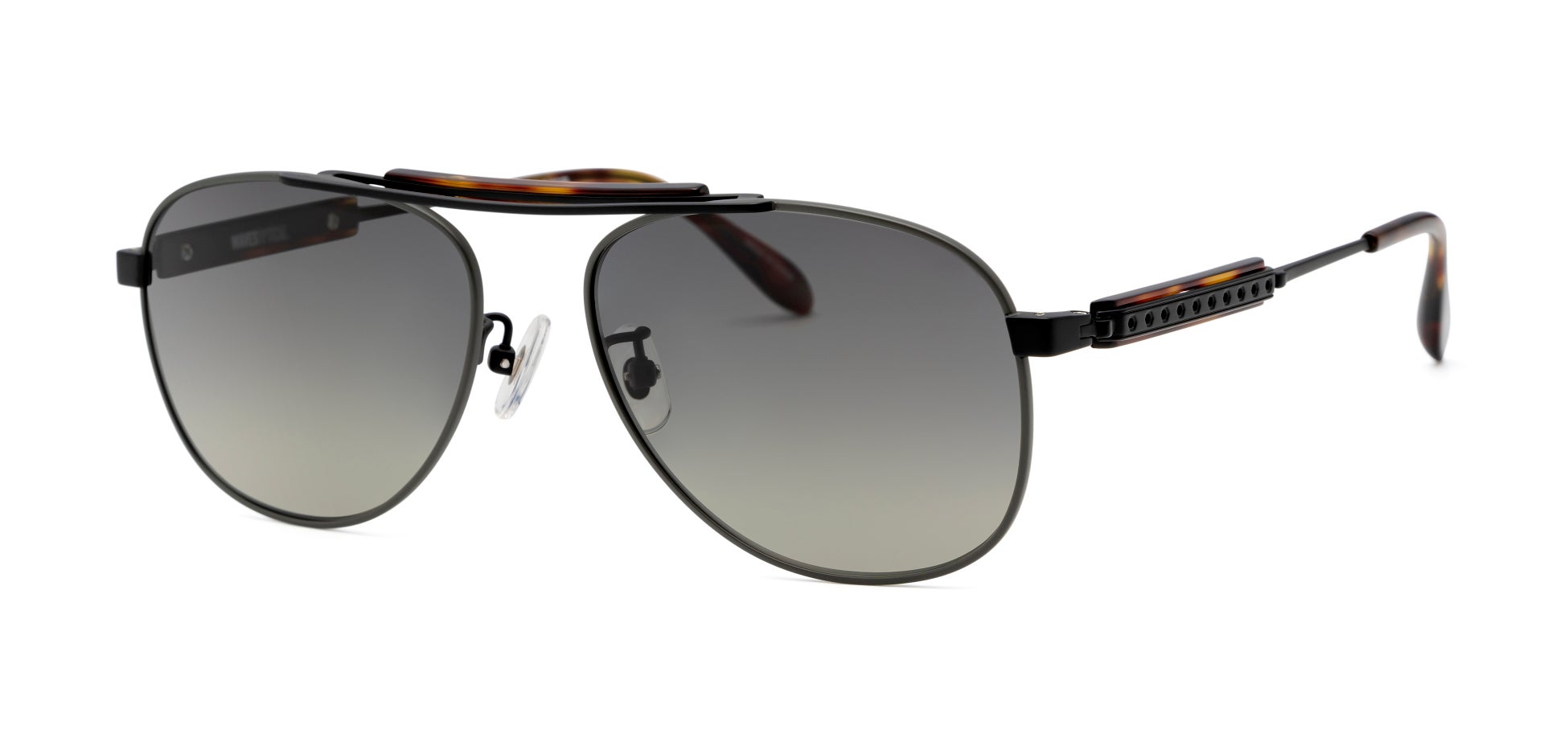パイロットシェイプ。汗止めとセットでテンプルにもアセテート飾りを配置しており、どの角度から見ても美しいサングラス。