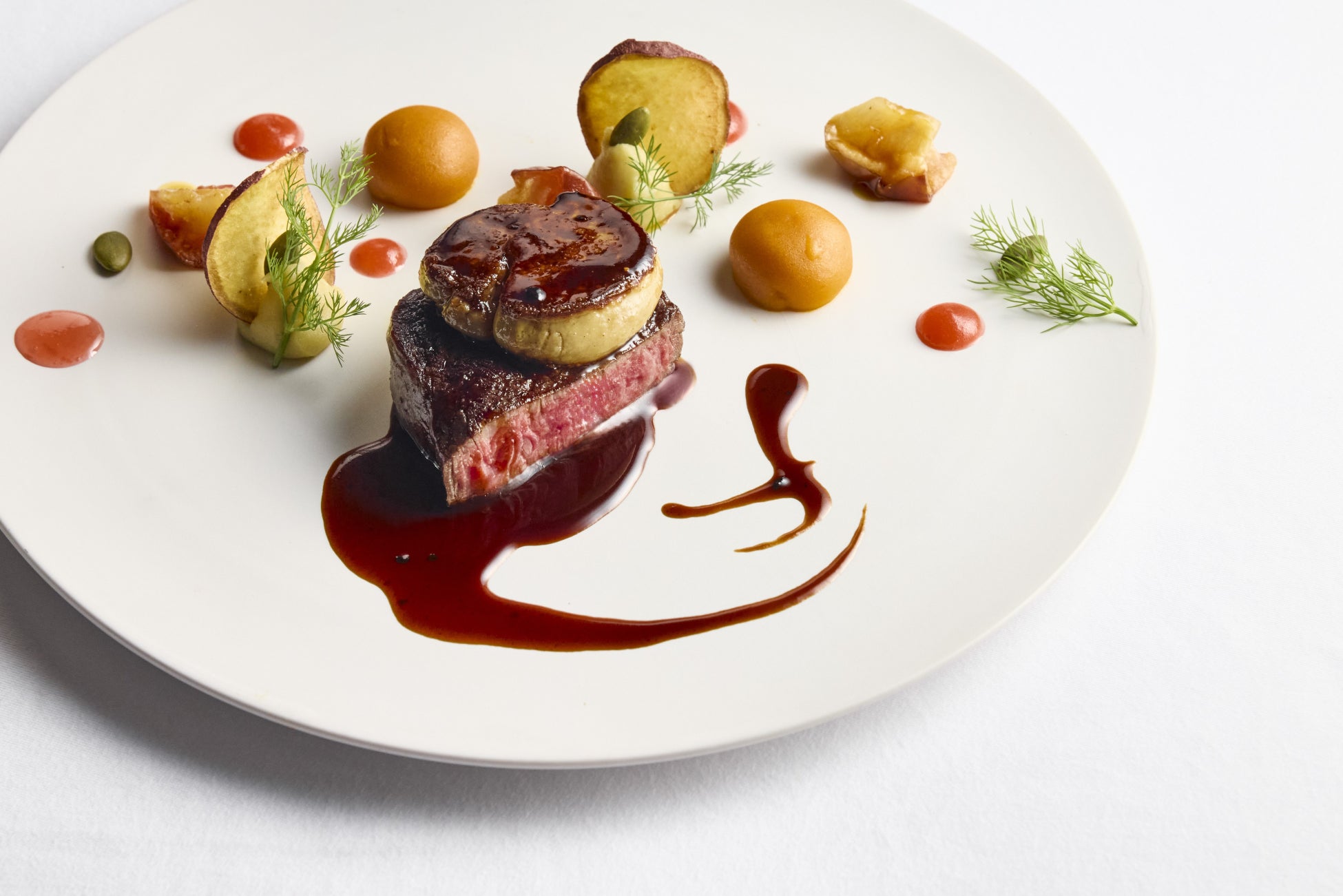 柔らかく焼き上げた和牛フィレ肉とフォアグラを使用した贅沢なメインディッシュ。