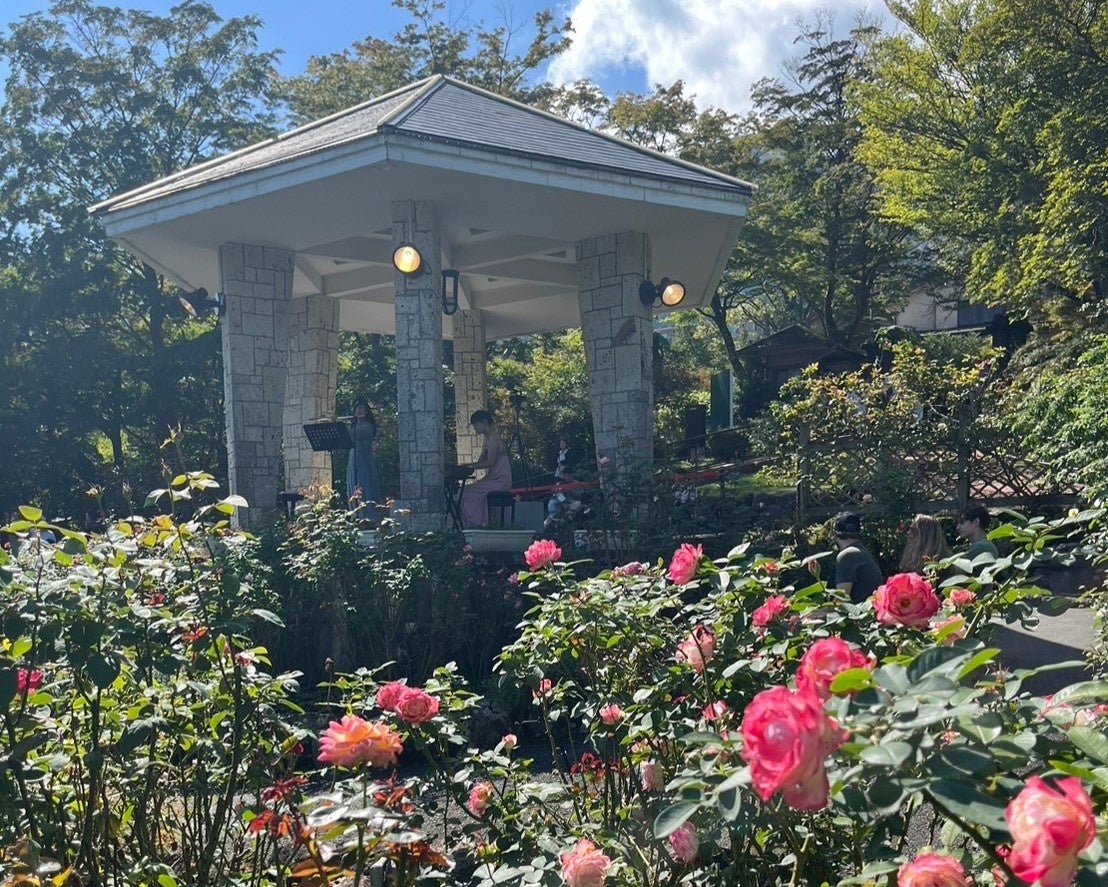 現在、箱根強羅公園はローズガーデンの秋バラが見頃を迎え、11月上旬までお楽しみいただけます。秋バラの香りに包まれながらピアノとクラリネットなどが奏でる音色を楽しむ「秋のローズガーデン音楽会」も好評で、11月10日(日)までの土日祝日に音楽堂にて開催しています。(雨天時は園内のサンドイッチ料理専門店「一色堂茶廊」で開催)例年11月中旬になると園内の紅葉が見頃となります。短い間ですが、秋バラと紅葉のコラボレーションもお楽しみいただけるかもしれません。