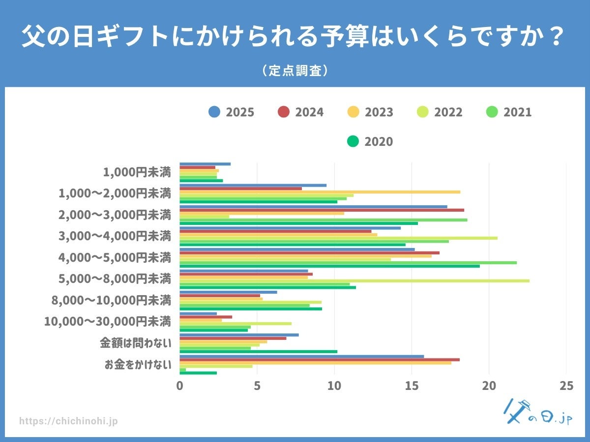 定点調査の結果から、父の日ギフトの予算は年々多様化しつつも、無理のない価格帯が主流になっていることがわかります。