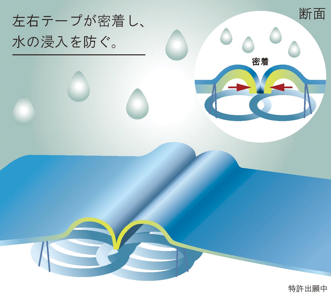 YKK株式会社との開発で実現した新型止水ファスナーを採用!