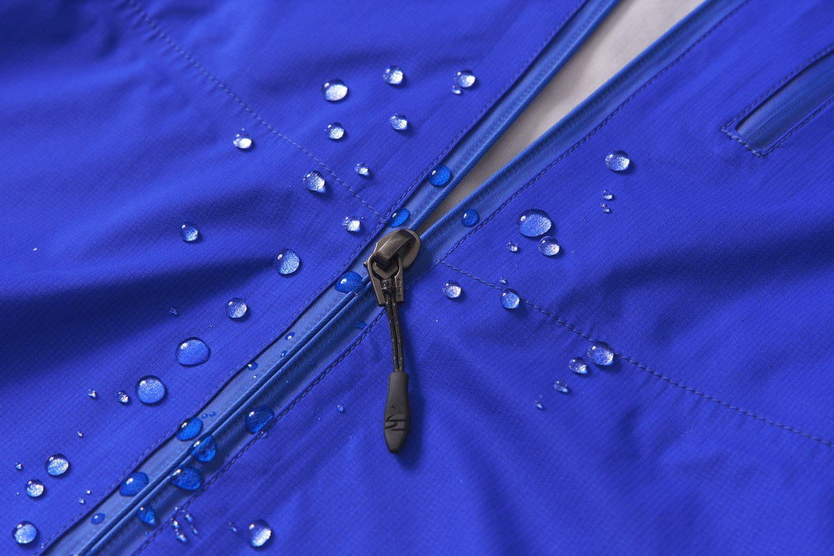 独自開発の防水透湿3層生地の表地・裏地に耐久撥水加工を施すことで悪天下で着続けても優れた透湿性を維持。長期間のハードユースにも耐える防水性と、生地のストレッチ性による動きやすさが特長。レインウエアとしてはもちろん、防風・防寒ウエアとしてもマルチに使えます。