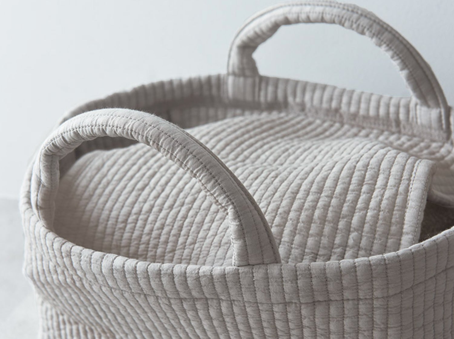 ボンモマンの大ヒットシリーズ「目隠しできる 帆布素材 収納トート」の形を踏襲し、新たに採用したのは韓国発のキルティング生地「ヌビ」風の素材。